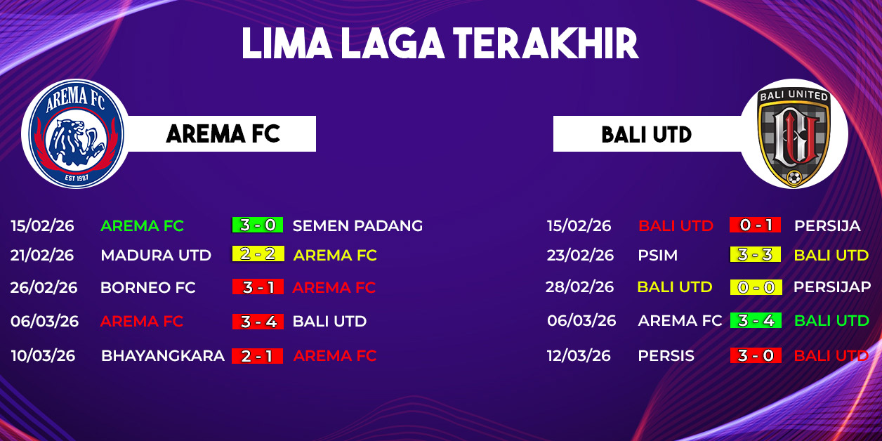 Dari lima pertemuan tersebut, Bali United unggul secara statistik dengan tiga kemenangan, satu hasil imbang, dan satu kekalahan. Namun, Arema FC tetap memiliki peluang besar terutama saat bermain di kandang.