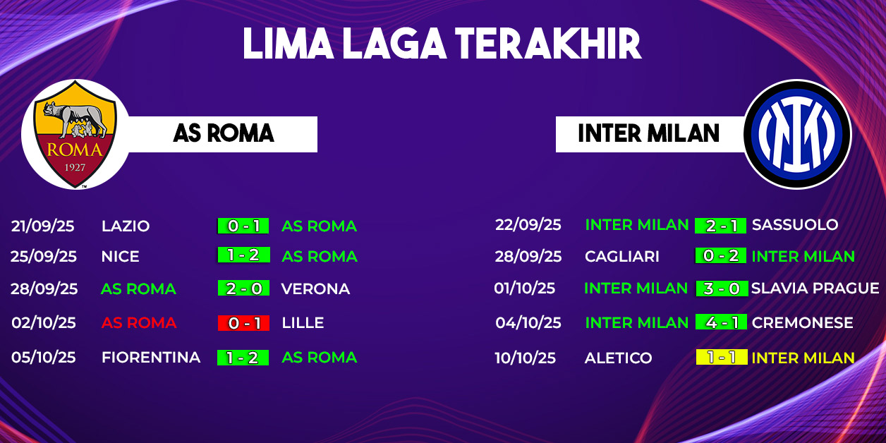 Sementara itu, Inter Milan datang ke Roma dengan kepercayaan diri tinggi setelah membukukan lima kemenangan beruntun di semua kompetisi. Terbaru, mereka menghancurkan Cremonese dengan skor 4-1 — hasil yang semakin mempertegas dominasi mereka di lini depan.
