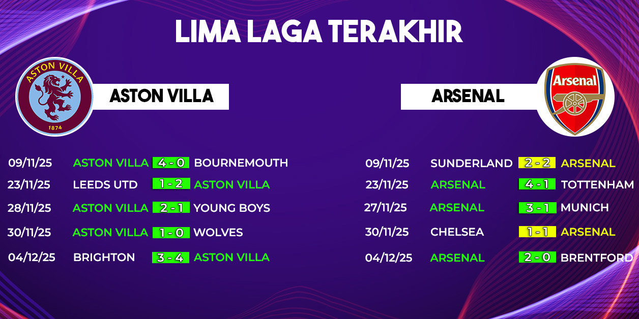 Catatan pertemuan kedua tim menambah daya tarik pertarungan ini. Pada pertemuan terakhir di Villa Park pada Agustus 2024, Arsenal sukses menang 2-0. Namun, pertandingan berikutnya di Emirates Stadium berakhir imbang 2-2, menunjukkan bahwa Aston Villa bukan lawan yang mudah ditaklukkan. Apalagi, Villa kini tengah dalam performa kandang yang luar biasa dengan delapan kemenangan beruntun dan hanya kebobolan tiga gol dalam rentang tersebut.