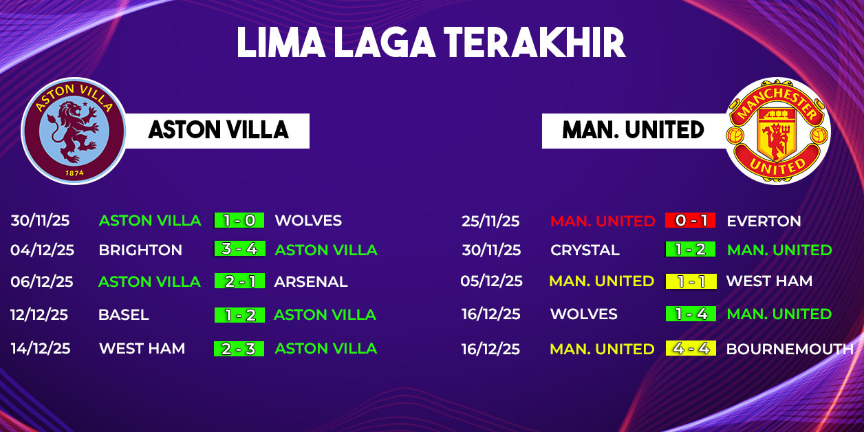 Dari sisi psikologis, Aston Villa berada di atas angin dengan posisi klasemen yang lebih baik dan performa kandang yang solid. Namun, Manchester United memiliki mentalitas besar dan sejarah panjang yang membuat mereka tidak bisa diremehkan dalam laga besar.