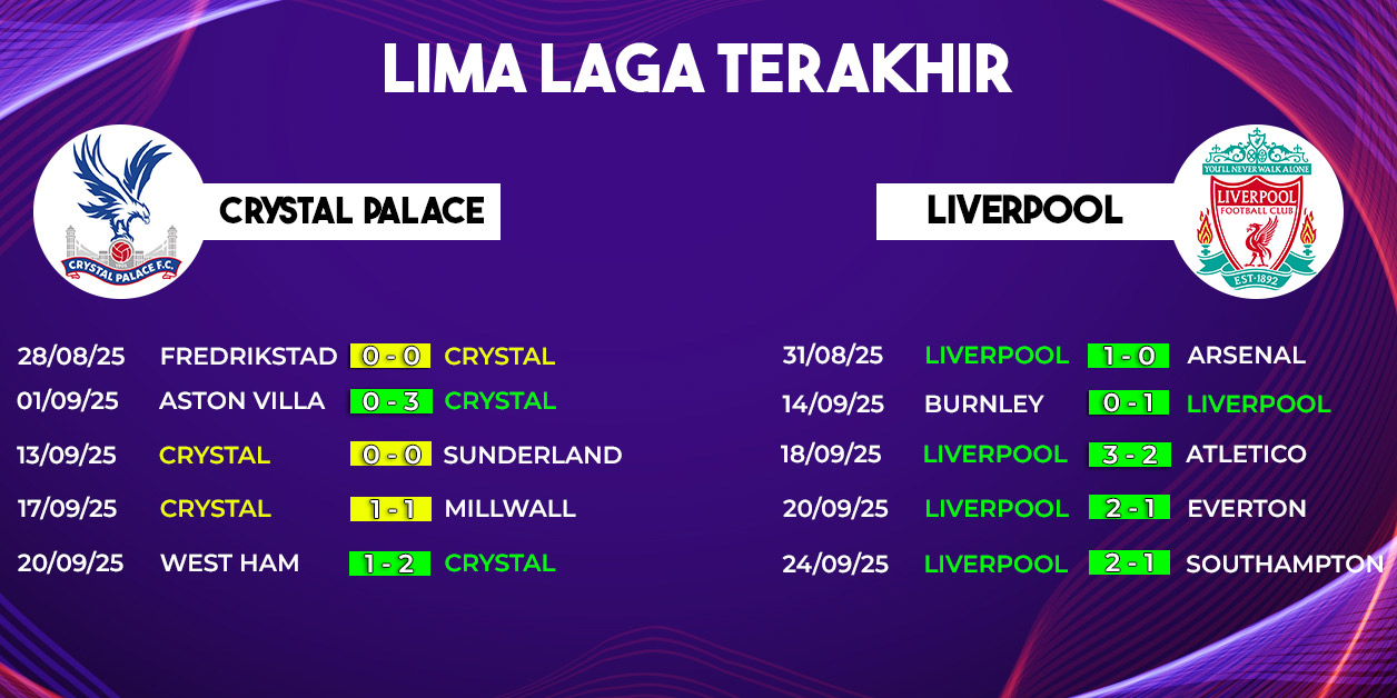 Kemenangan ini membuat Palace memperpanjang rekor tak terkalahkan dalam sembilan laga awal musim 2025/2026 di semua ajang. Performa konsisten tersebut memberi modal kuat bagi skuad asuhan Oliver Glasner untuk menghadapi raksasa Merseyside.