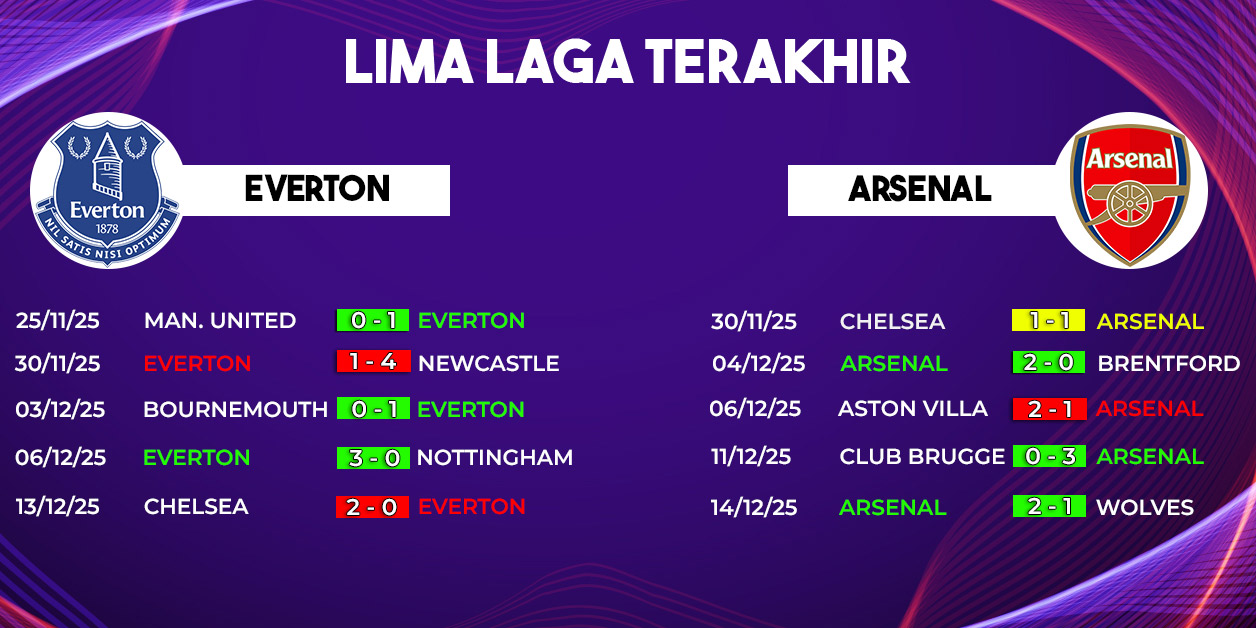 Di sisi lain, Arsenal bertandang ke markas Everton dengan misi yang jelas: menjaga konsistensi dan tetap berada dalam jalur perebutan gelar Premier League 2025/2026. Posisi mereka di papan atas mulai mendapat tekanan setelah Manchester City terus menempel ketat.