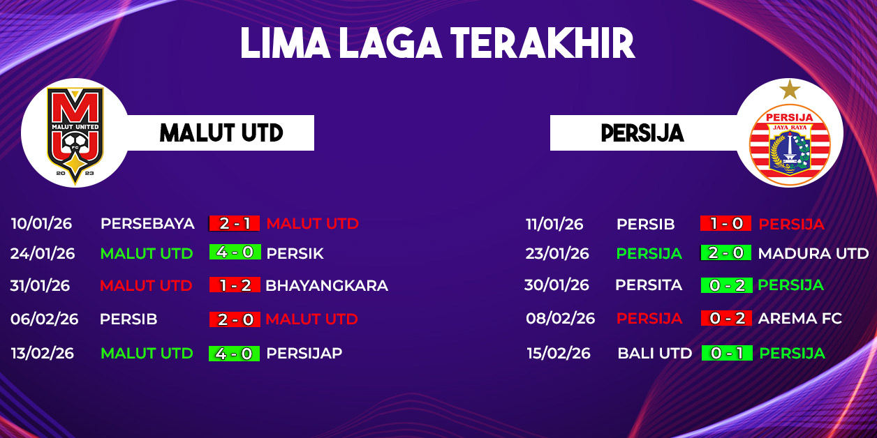 Selain itu, posisi klasemen menunjukkan Persija berada di papan atas sementara Malut United juga tampil impresif di empat besar, sehingga laga ini berpotensi menjadi duel penentu arah persaingan gelar.