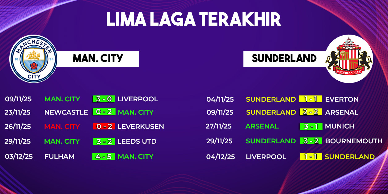 Pertandingan ini menjadi penentu penting bagi ambisi juara Manchester City. Di sisi lain, Sunderland ingin melanjutkan kisah magis mereka di Premier League. Dengan kondisi kedua tim yang sangat berbeda, laga ini dipastikan berlangsung sengit dan penuh kejutan.
