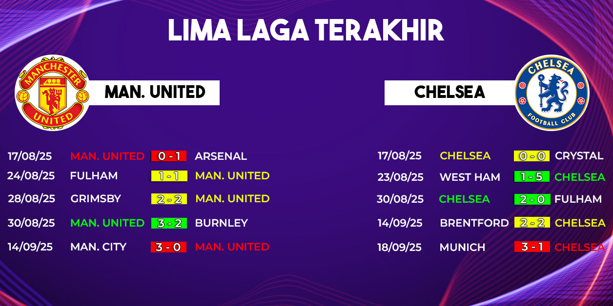Pertandingan besar kembali tersaji di Liga Inggris 2025-2026 saat Manchester United menjamu Chelsea di Stadion Old Trafford pada Sabtu (20/9/2025) pukul 23.30 WIB. Laga Manchester United vs Chelsea menjadi sorotan utama pekan kelima karena mempertemukan dua klub raksasa dengan sejarah rivalitas panjang.