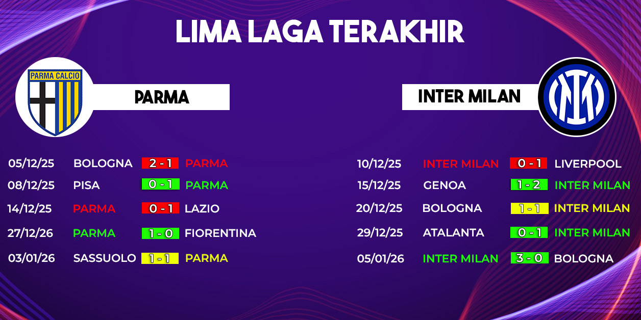 Di sisi lain, Inter Milan datang ke Ennio Tardini dengan status pemuncak klasemen Serie A 2025/2026. Nerazzurri unggul satu poin dari rival sekota mereka, AC Milan, dalam perburuan gelar juara.