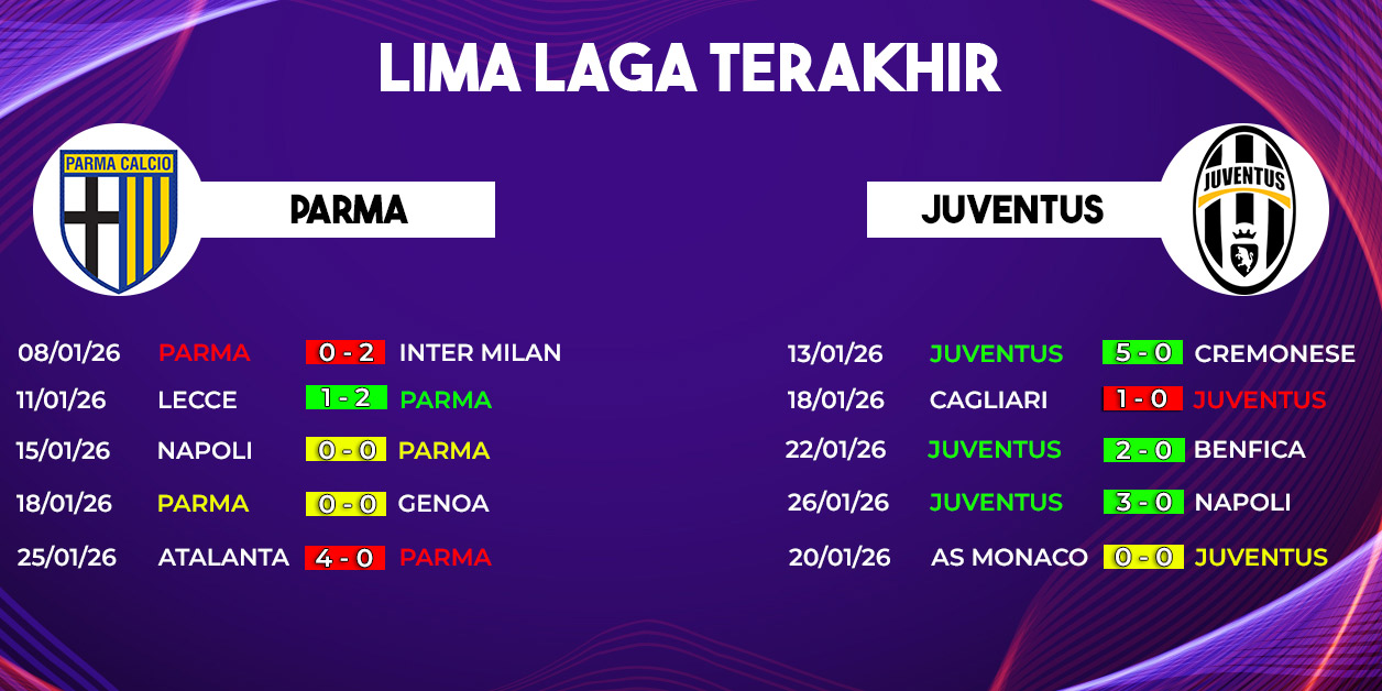 Keunggulan head to head ini menjadi modal penting bagi Juventus untuk tampil lebih percaya diri. Sebaliknya, Parma harus bekerja ekstra keras jika ingin mematahkan dominasi Bianconeri dan mencuri poin di kandang sendiri.