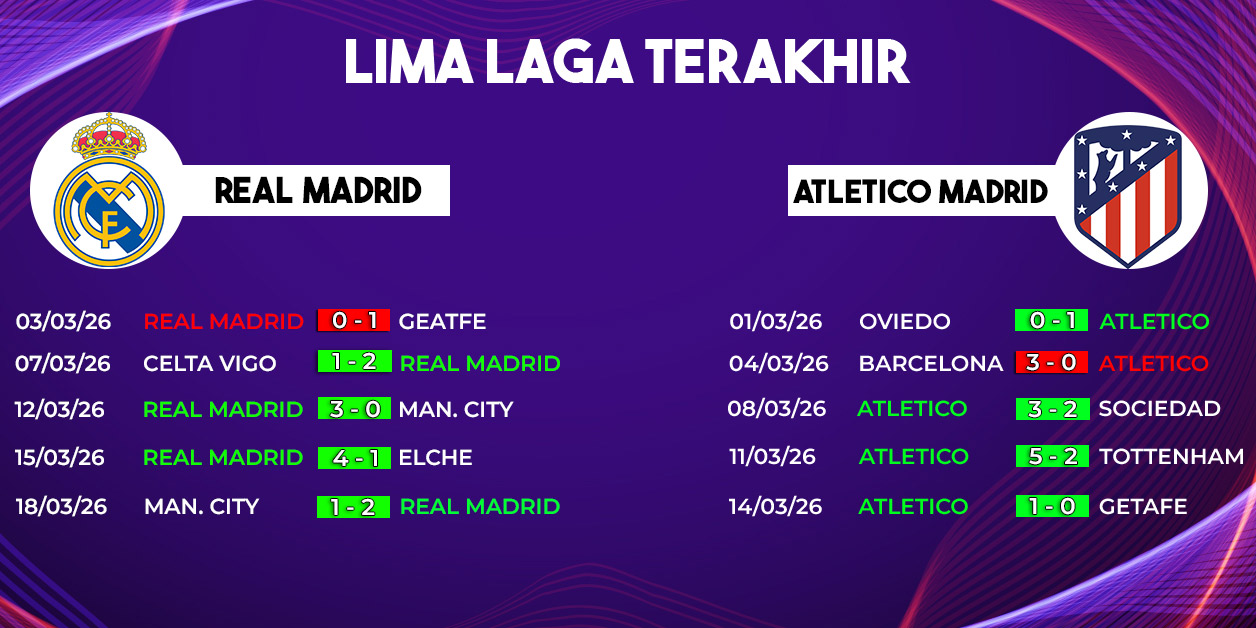 Real Madrid mungkin akan lebih dominan dalam penguasaan bola, tetapi Atletico Madrid dikenal sangat berbahaya dalam situasi serangan balik. Duel di lini tengah akan menjadi penentu siapa yang mampu mengontrol jalannya pertandingan.
