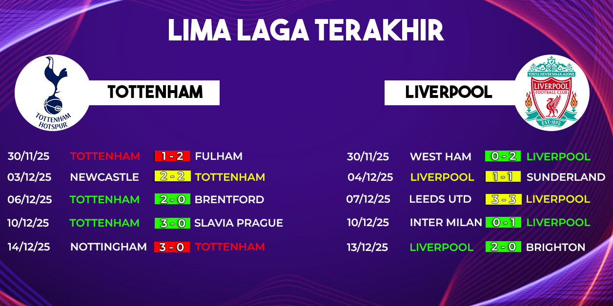 Apapun hasilnya, Tottenham vs Liverpool dipastikan menjadi salah satu laga paling menarik di pekan ke-17 Premier League 2025/2026, penuh gengsi, emosi, dan kualitas kelas atas Liga Inggris.